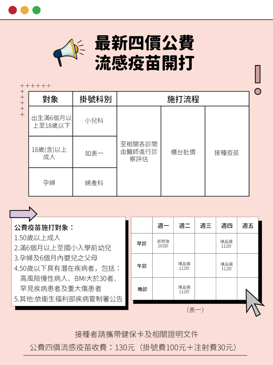 3. 最新四價公費流感疫苗開打