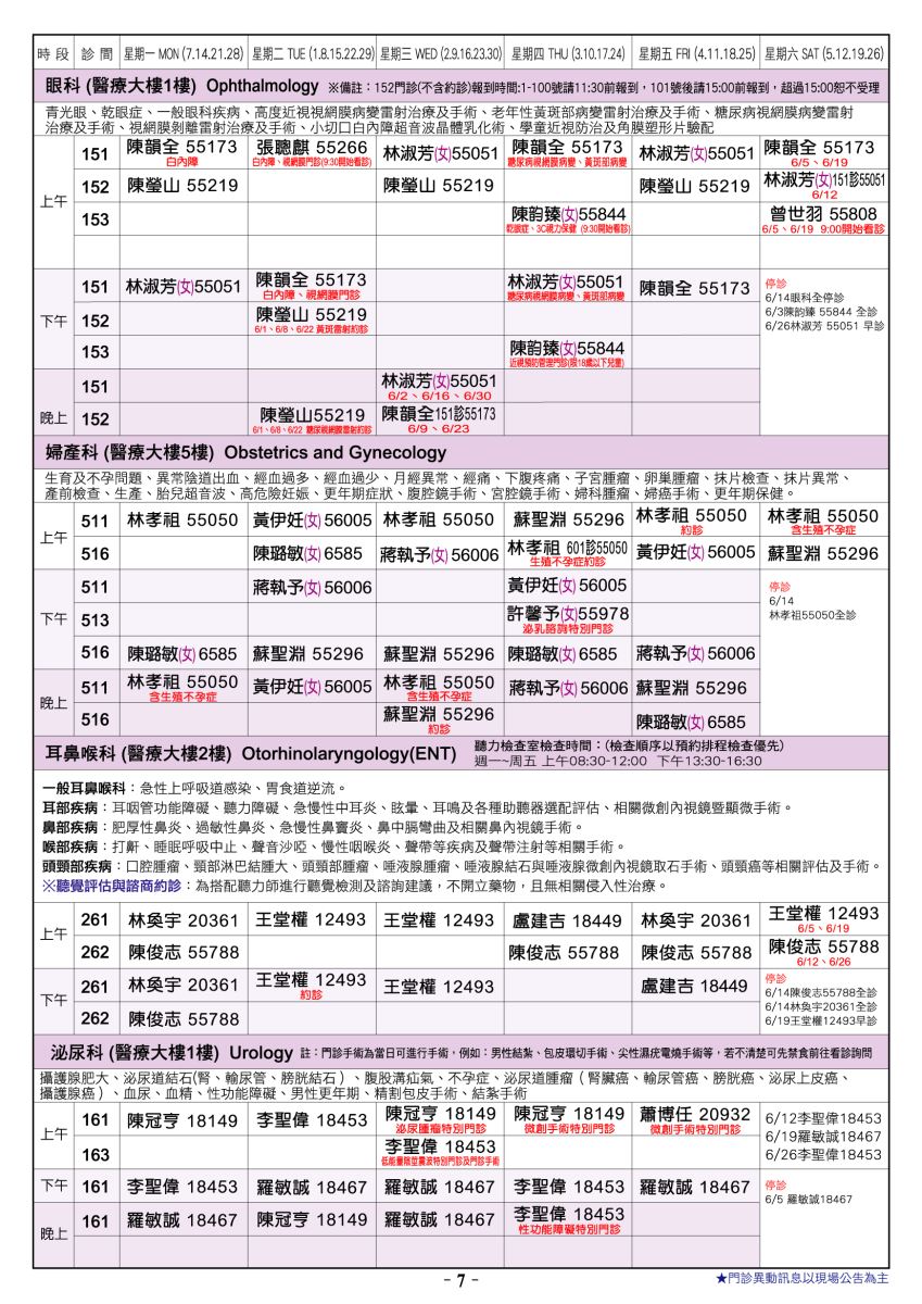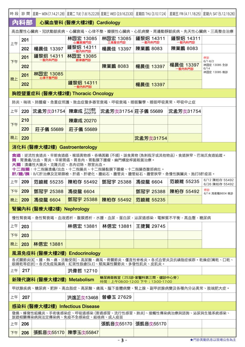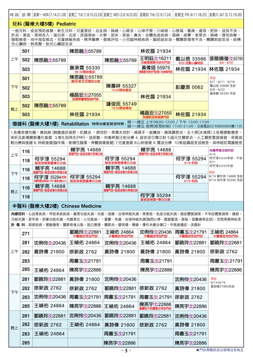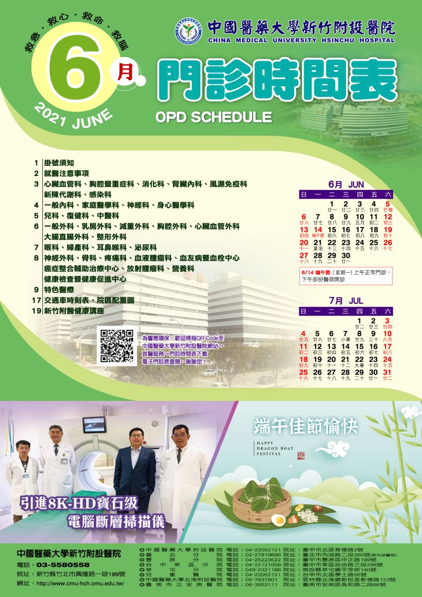 中醫大新竹附醫六月份門診時間表(下載請點選)