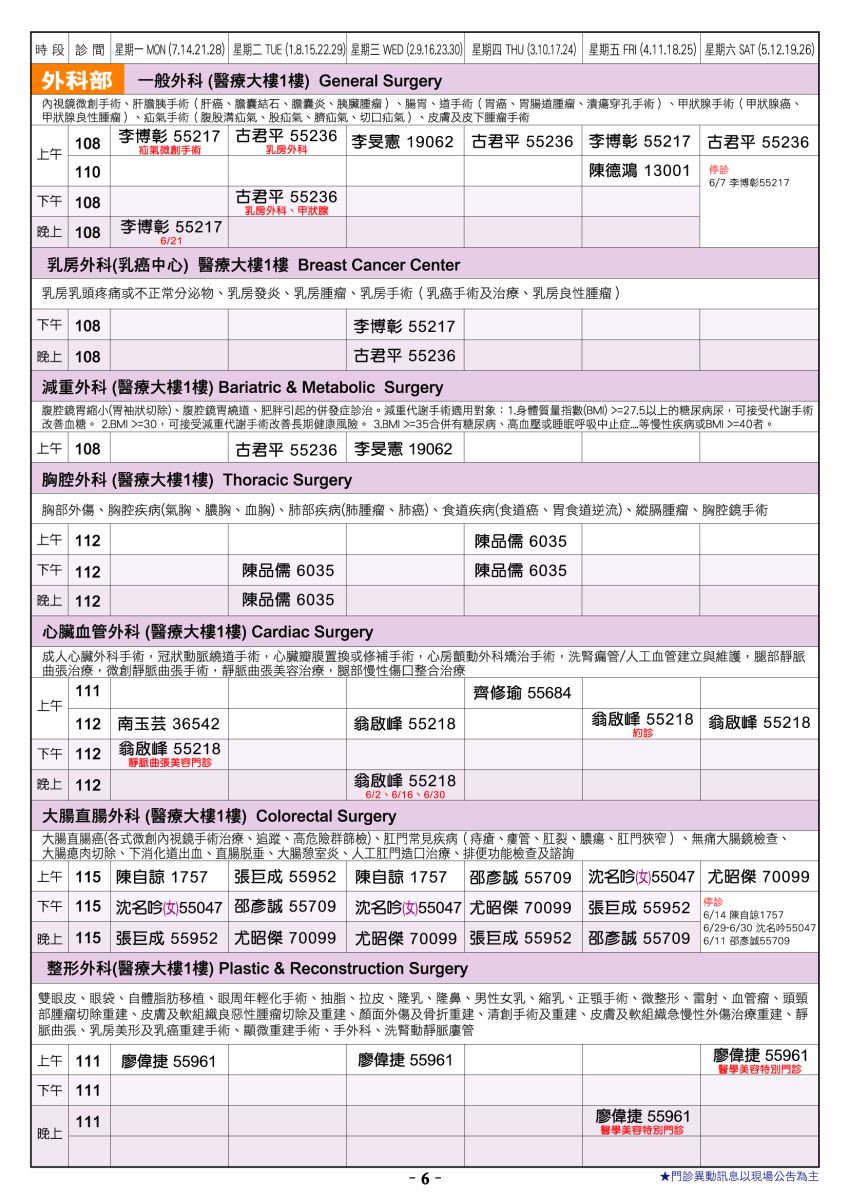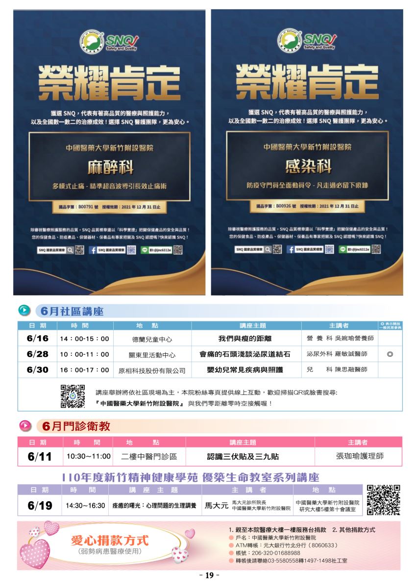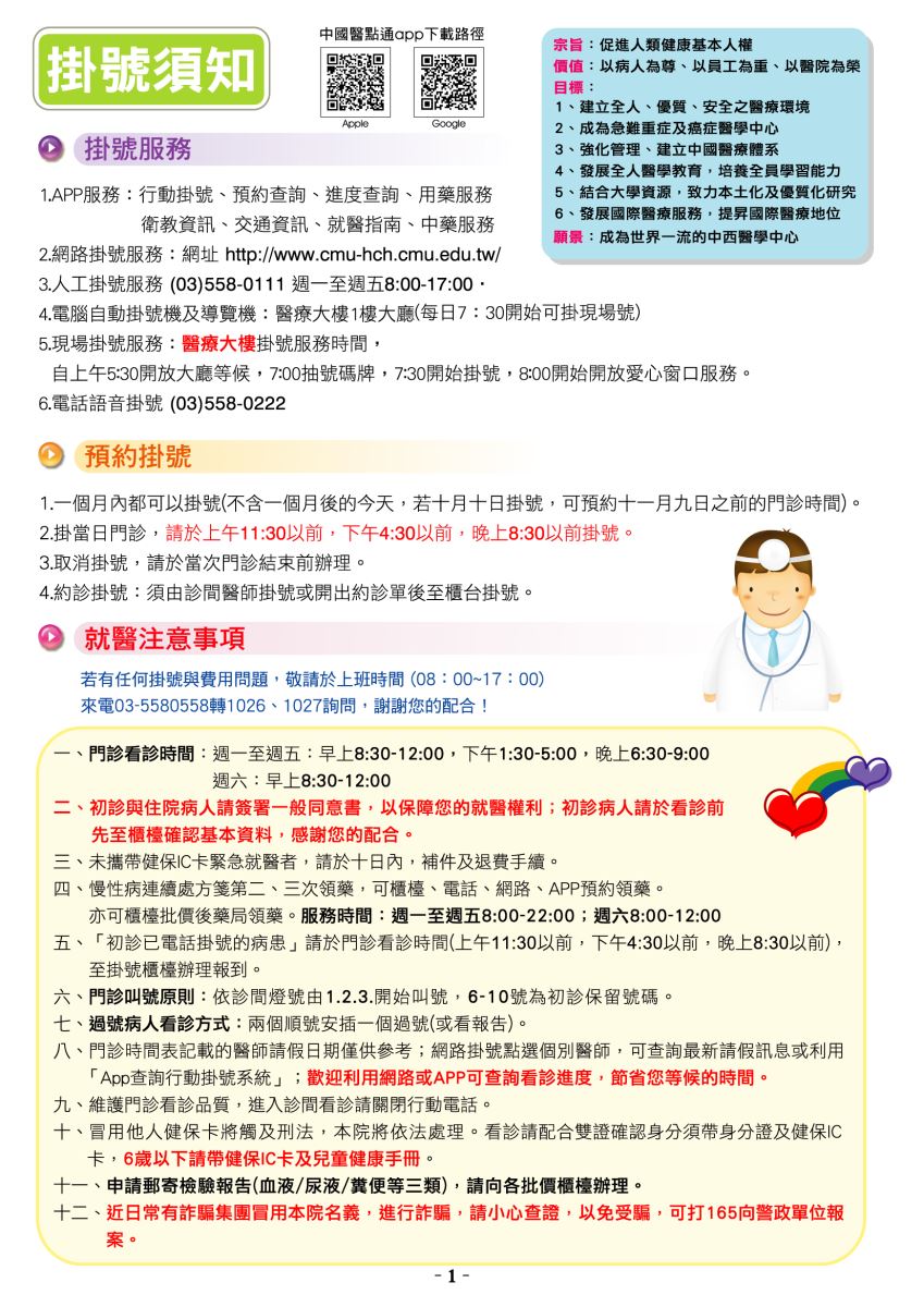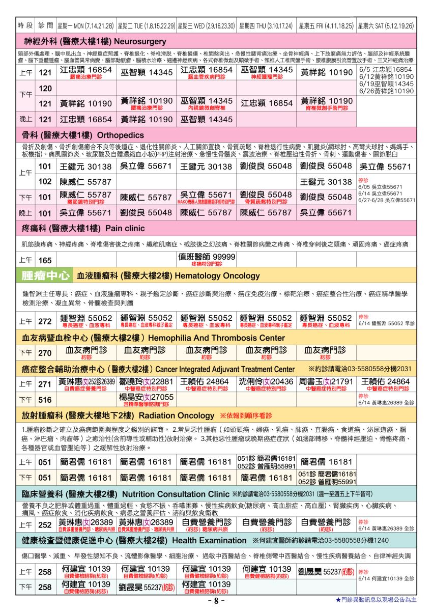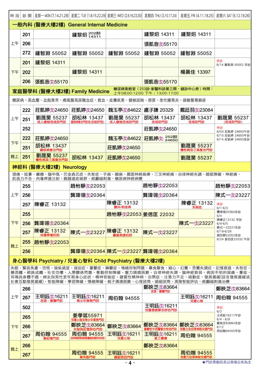 中醫大新竹附醫六月份門診時間表(下載請點選)
